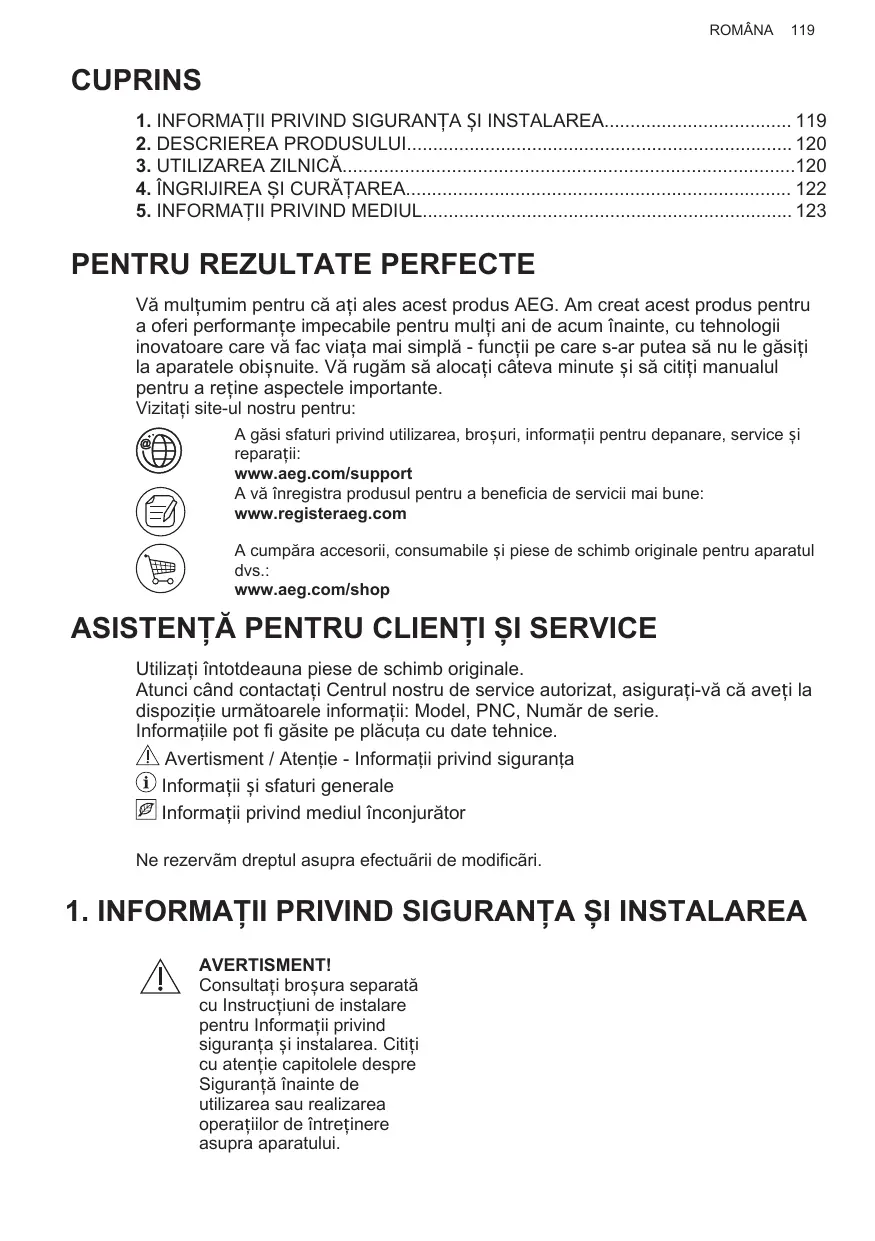 Enregistrer votre produit pour un meilleur service : www.registeraeg.com Acheter des accessoires, consommables et pièces de rechange d’origine pour votre appareil : www.aeg.com/shop
