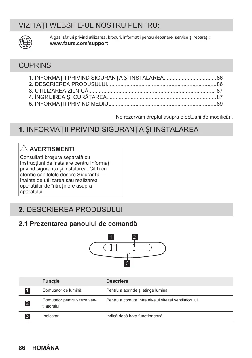 MANUAL DE UTILIZARE FFG325S FAURE