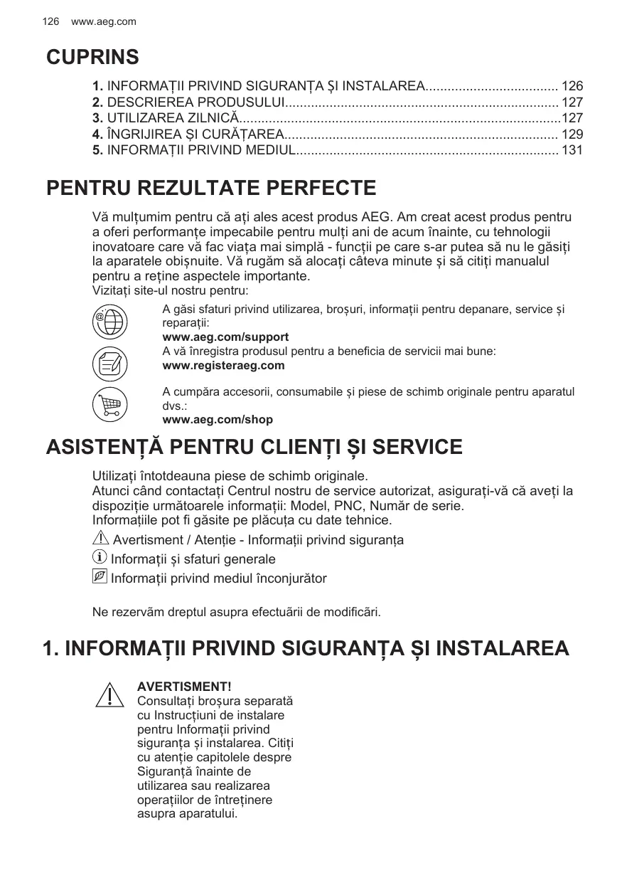 Enregistrer votre produit pour un meilleur service : www.registeraeg.com Acheter des accessoires, consommables et pièces de rechange d’origine pour votre appareil : www.aeg.com/shop