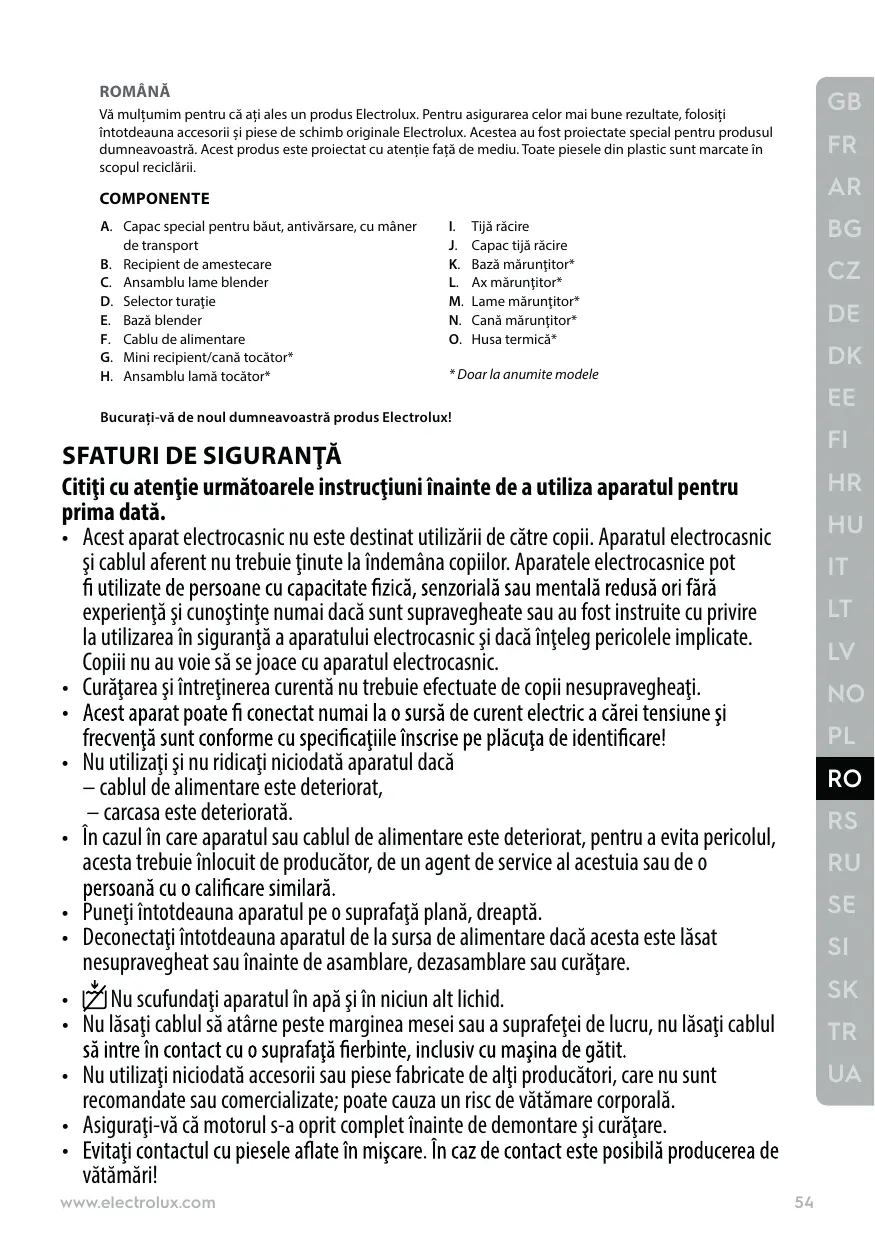Vă mulțumim pentru că ați ales un produs Electrolux. Pentru asigurarea celor mai bune rezultate, folosiți întotdeauna accesorii și piese de schimb originale Electrolux. Acestea au fost proiectate special pentru produsul dumneavoastră. Acest produs este proiectat cu atenție față de mediu. Toate piesele din plastic sunt marcate în scopul reciclării.