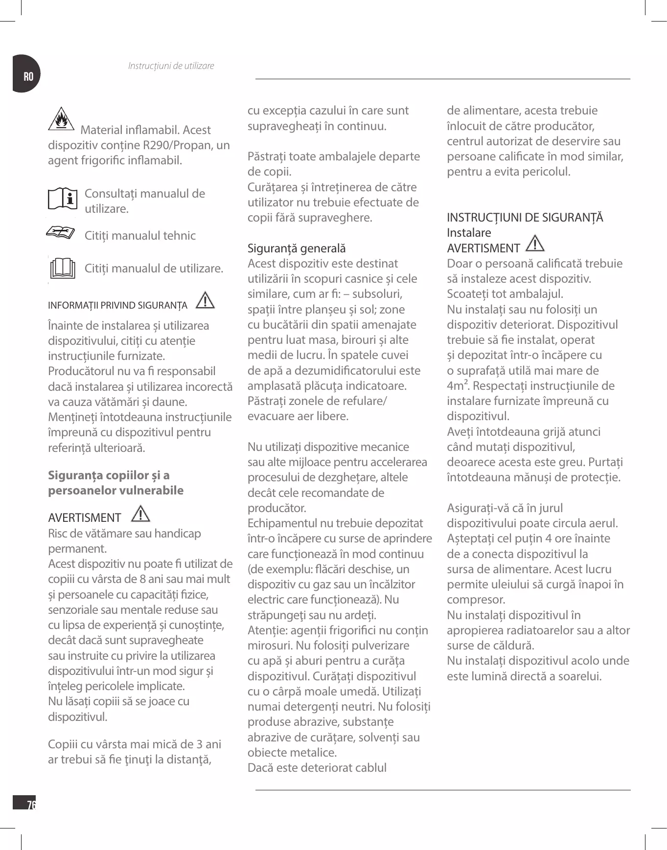 RO Aveți grijă să nu provocaţi deteriorarea circuitului de agent frigorific. Acesta conține propan