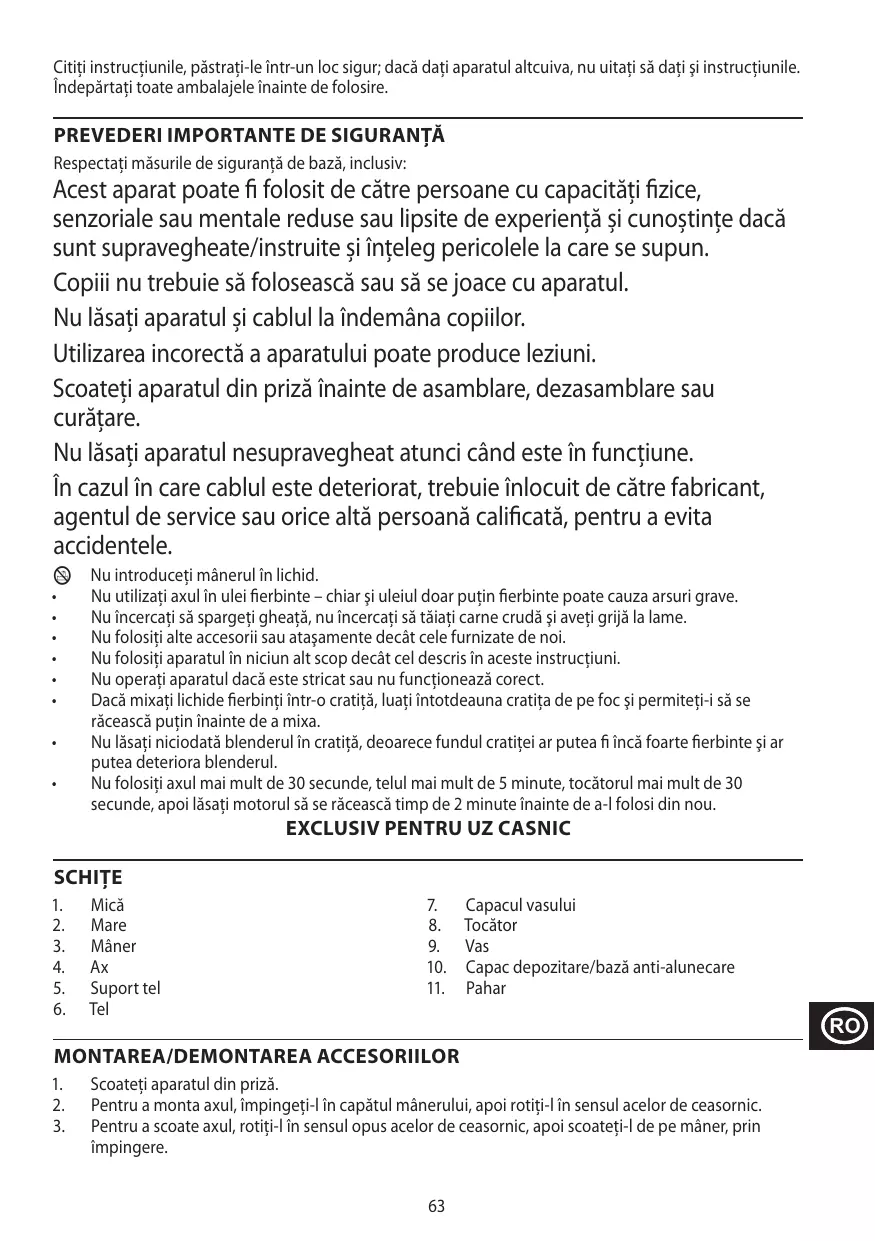 Les enfants ne doivent pas utiliser ni jouer avec l'appareil. Tenez l'appareil et le câble hors de portée des enfants. Une utilisation inappropriée de l'appareil peut causer des blessures. Débranchez l'appareil avant le montage, le démontage ou le nettoyage. Ne laissez pas l’appareil sans surveillance lorsqu’il est branché. Si le câble est abîmé, vous devez le faire remplacer par le fabricant, un de ses techniciens agréés ou une personne également qualifiée, pour éviter tout danger. H • • N’essayez pas de piler de la glace ou de hacher de la viande crue et faites attention aux lames. N’adaptez pas d’accessoires autres que ceux fournis. N’utilisez pas l’appareil dans un autre but que celui décrit dans ces instructions. N’utilisez pas l’appareil s’il est endommagé ou s’il ne fonctionne pas correctement. Si vous mélangez des liquides chauds dans une casserole, retirez dans tous les cas la casserole de la source de chaleur et laissez-la refroidir un peu avant de procéder au mélange. Ne laissez en aucun cas le mélangeur dans la casserole, car le fond de cette dernière pourrait être encore très chaud et endommager le mélangeur. Ne pas utiliser le batteur pendant plus de 30 secondes, le fouet pendant plus de 5 minutes, le hachoir pendant plus de 30 secondes. Laissez le moteur refroidir pendant 2 minutes avant d’utiliser à nouveau ces accessoires.