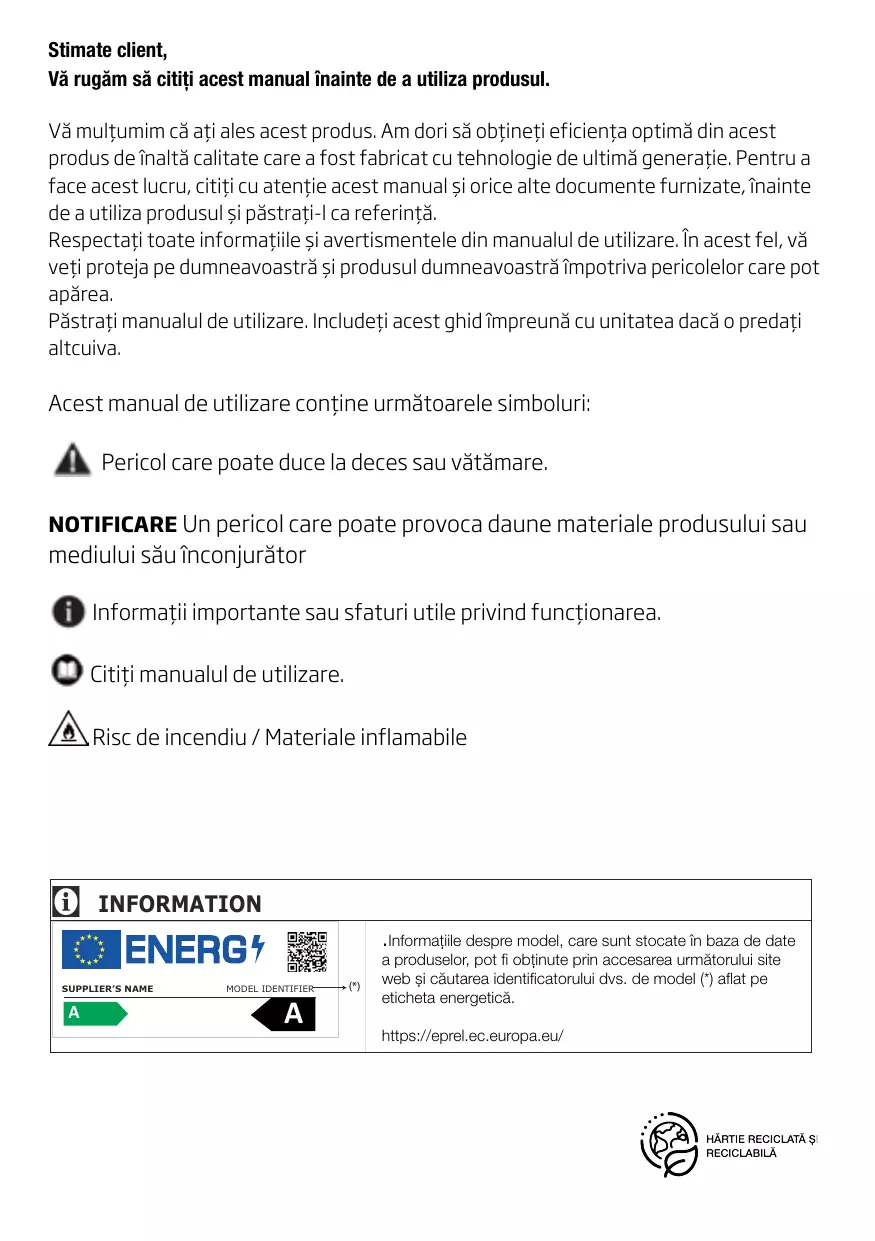 MANUAL DE UTILIZARE REFRIGERATEURB7RCNES595ZXPW BEKO