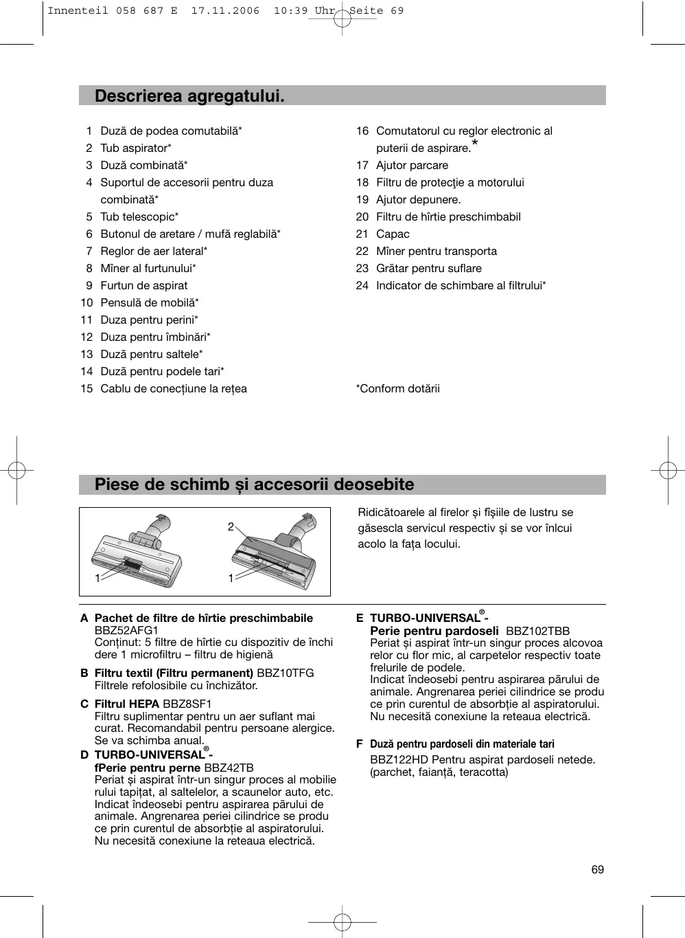 Duza pentru perini* Duza pentru îmbinări* Duzã pentru saltele* La toate lucrările ce se execută la aspirator se 70