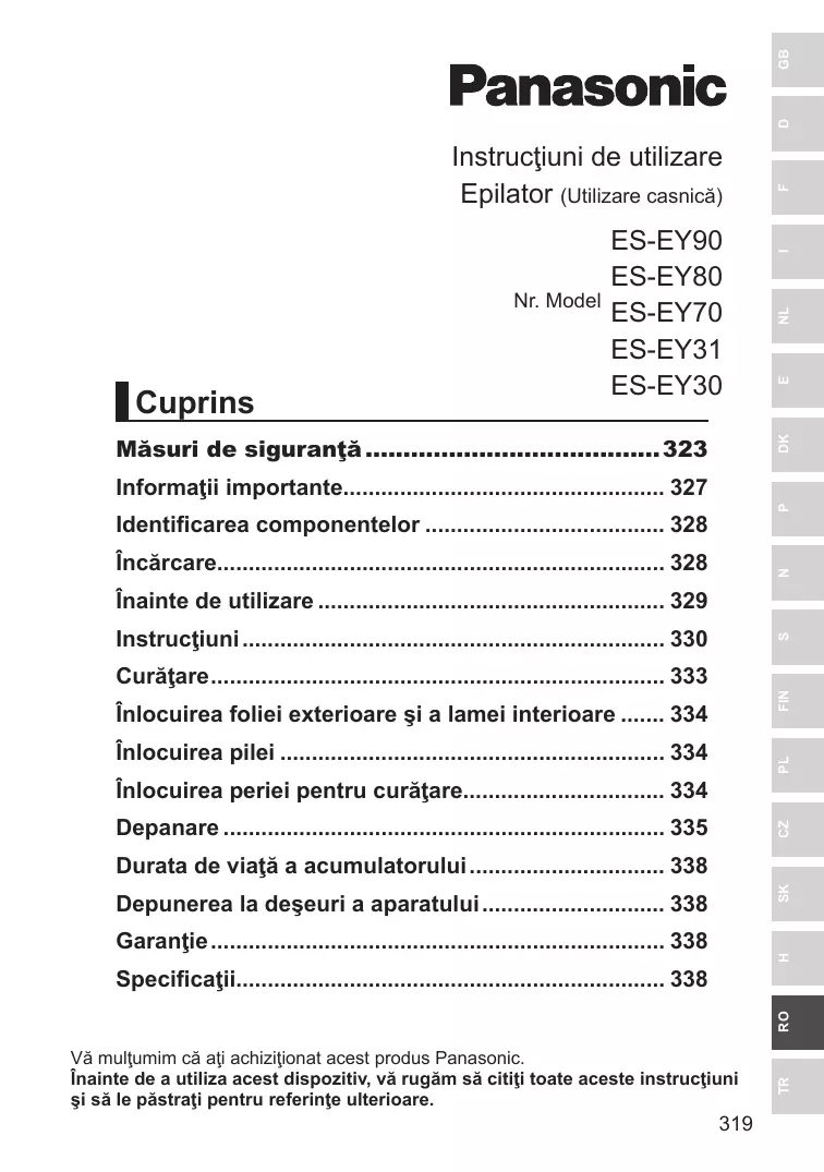 MANUAL DE UTILIZARE ES-EY70A-G503 PANASONIC