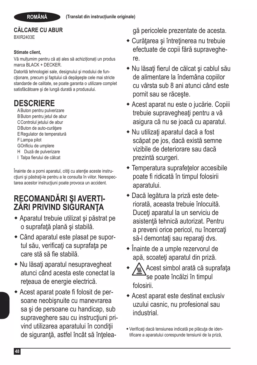 MANUAL DE UTILIZARE AVAPBXIR2403E BLACK & DECKER