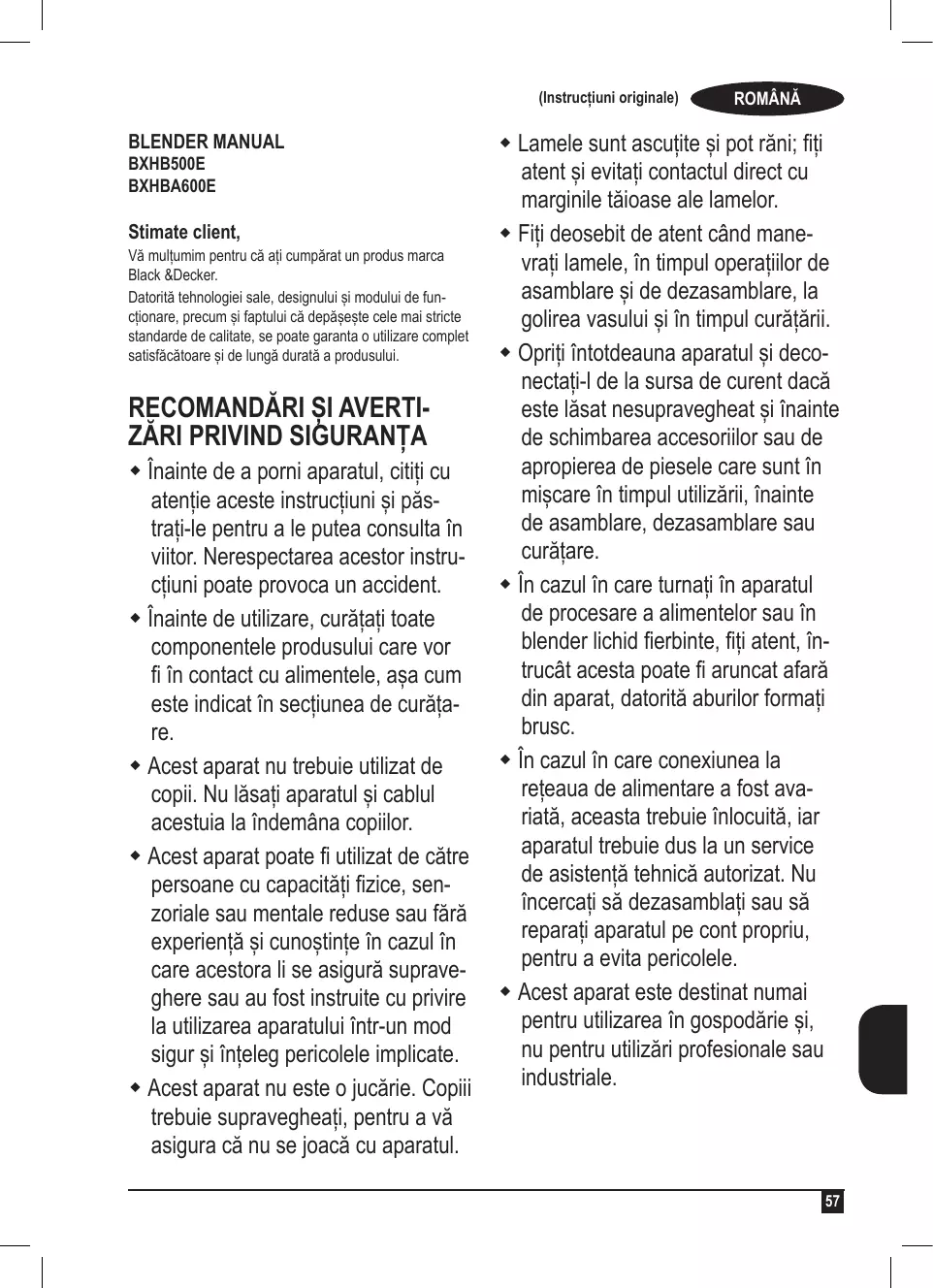 MANUAL DE UTILIZARE BXHB500E BLACK & DECKER
