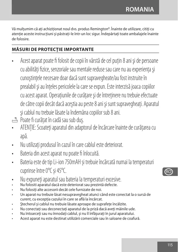 MANUAL DE UTILIZARE PG780 REMINGTON