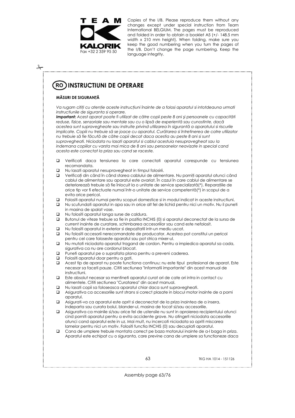 MANUAL DE UTILIZARE HA 1014S TEAM KALORIK