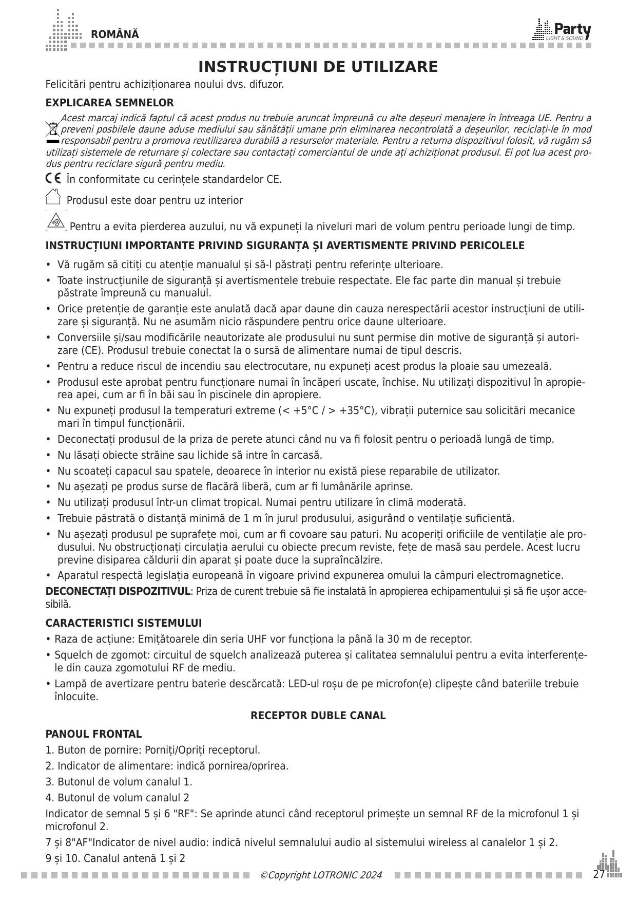 MANUAL DE UTILIZARE PARTY-200UHF PARTY LIGHT&SOUND