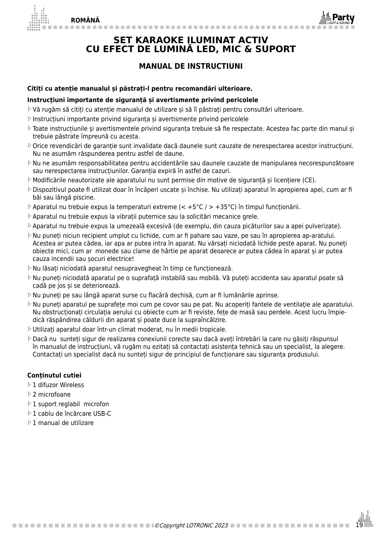 MANUAL DE UTILIZARE 10-9031PLS PARTY LIGHT&SOUND