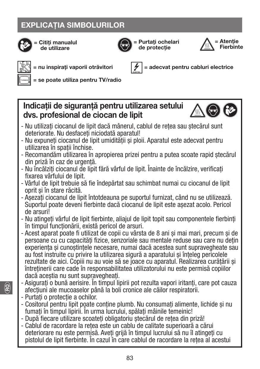 Indicatii de sigurantä pentru utilizarea setului ( dvs. profesional de ciocan de lipit A© @