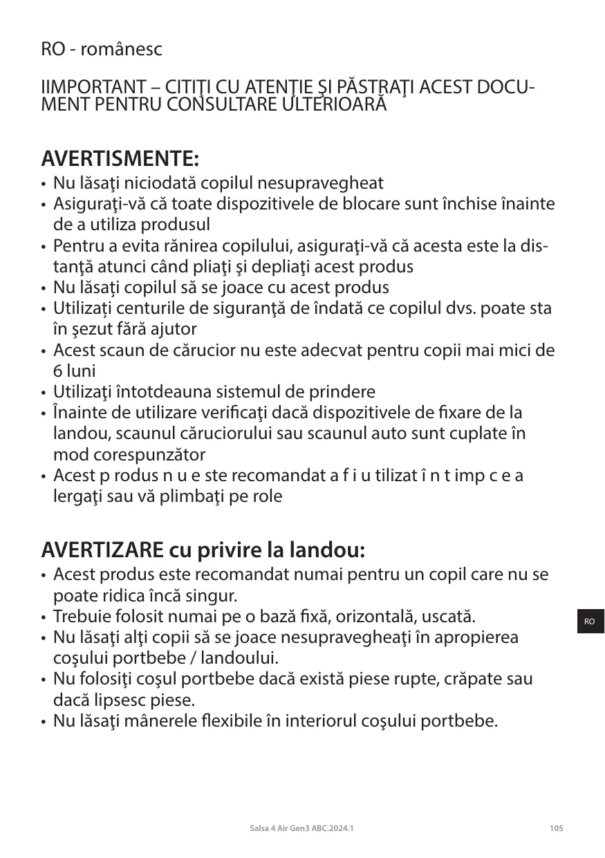 MANUAL DE UTILIZARE SALSA 4 AIR ABC DESIGN
