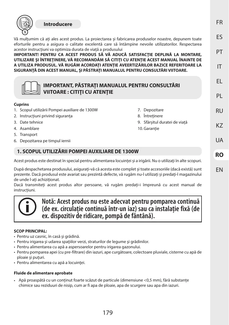 MANUAL DE UTILIZARE 1300 WT 50 SM5I-3 6000 L/H STERWINS