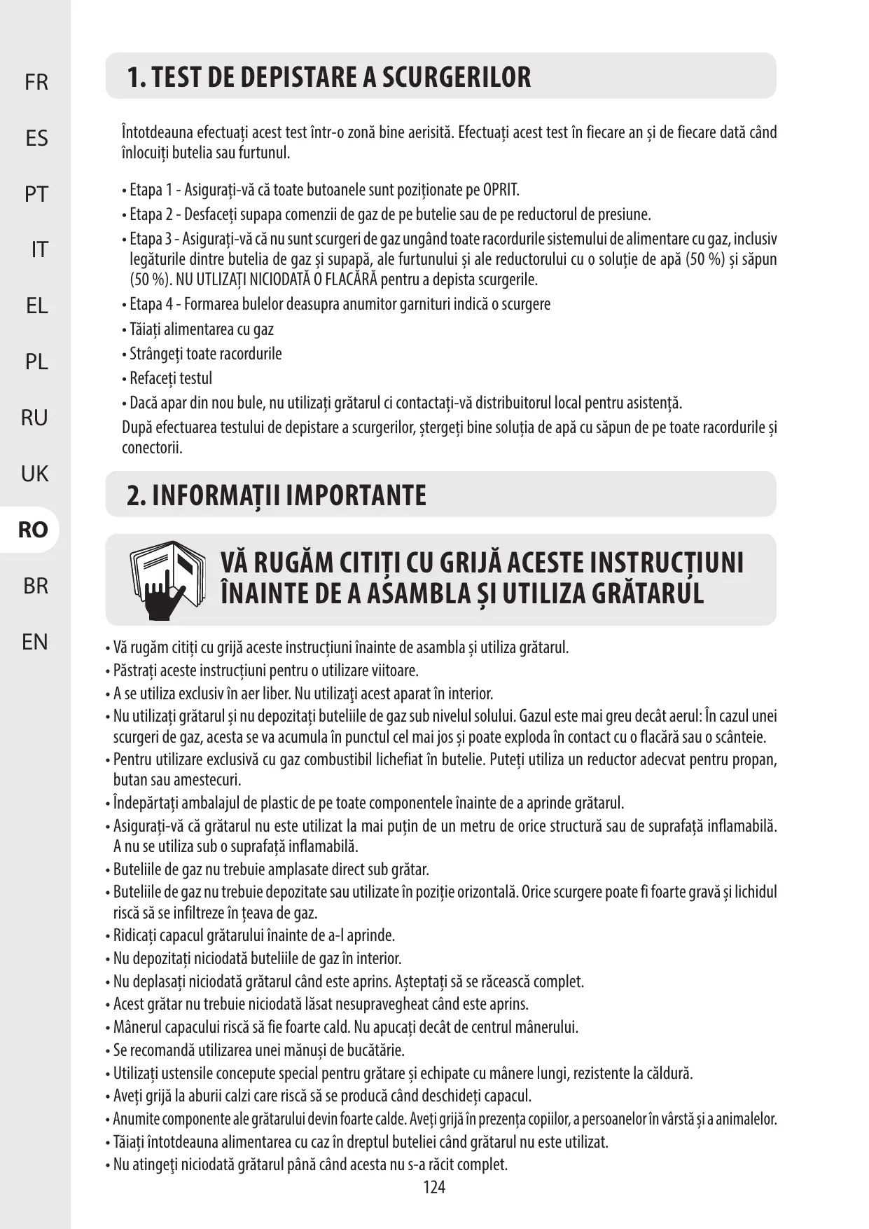 - Avant d'utiliser votre barbecue faîtes un test de fuite. C'est le seul moyen fiable de détecter une fuite de gaz sur les joints ou les connexions après le montage.