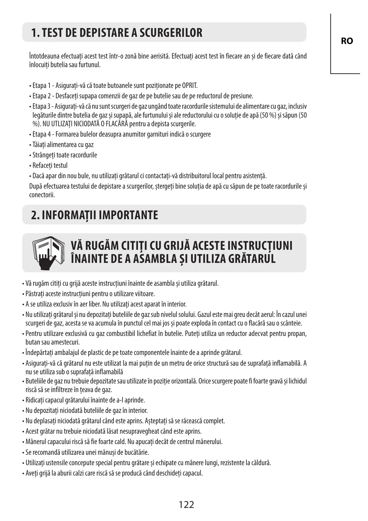- Avant d'utiliser votre barbecue faîtes un test de fuite. C'est le seul moyen fiable de détecter une fuite de gaz sur les joints ou les connexions après le montage.