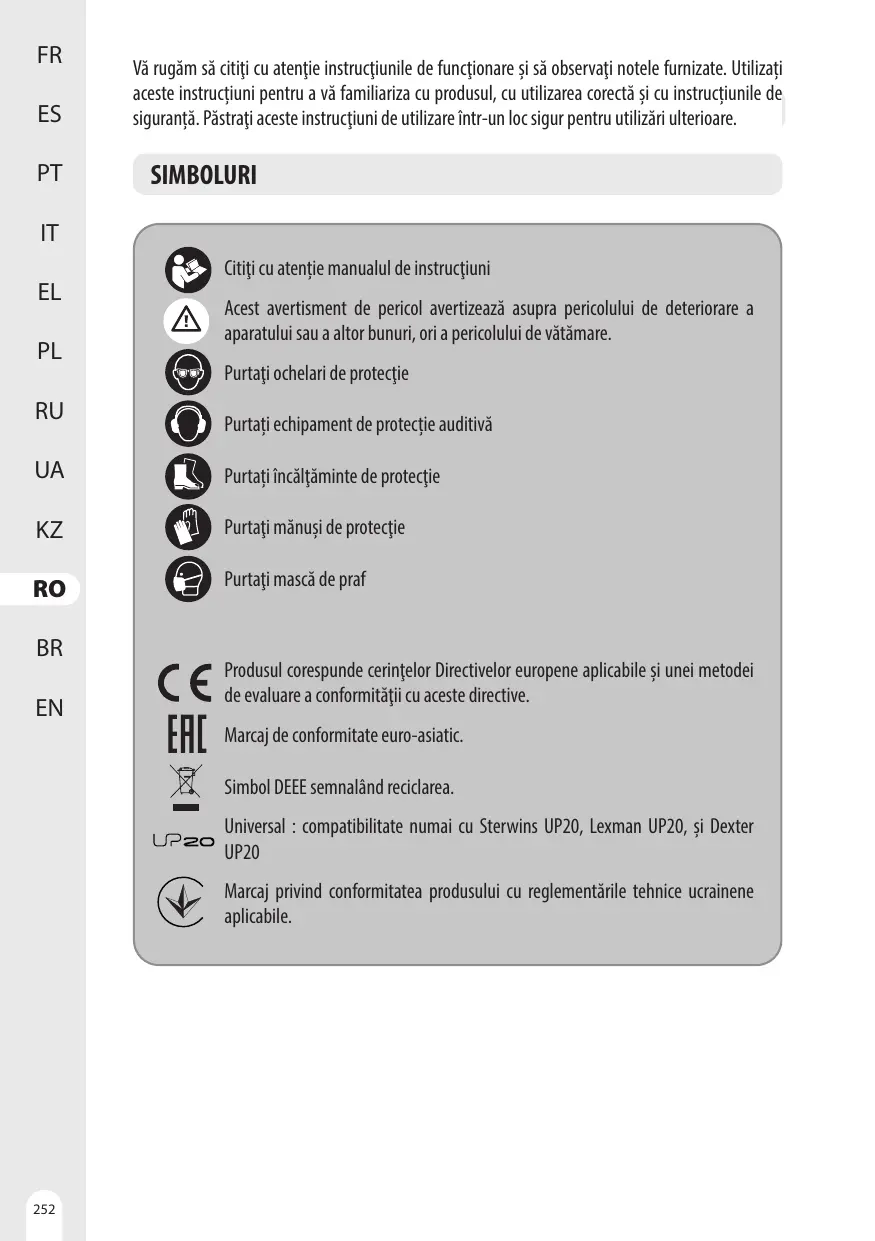 MANUAL DE UTILIZARE UP20 20 V - 20VJS2-28.1 DEXTER