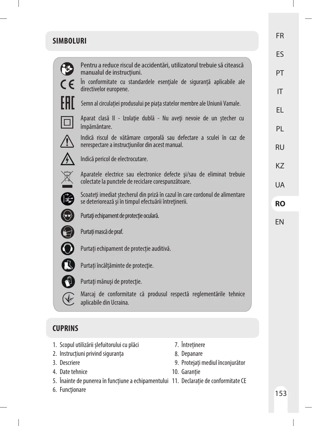 1. Domaine d'utilisation de la ponceuse vibrante 7. Entretien