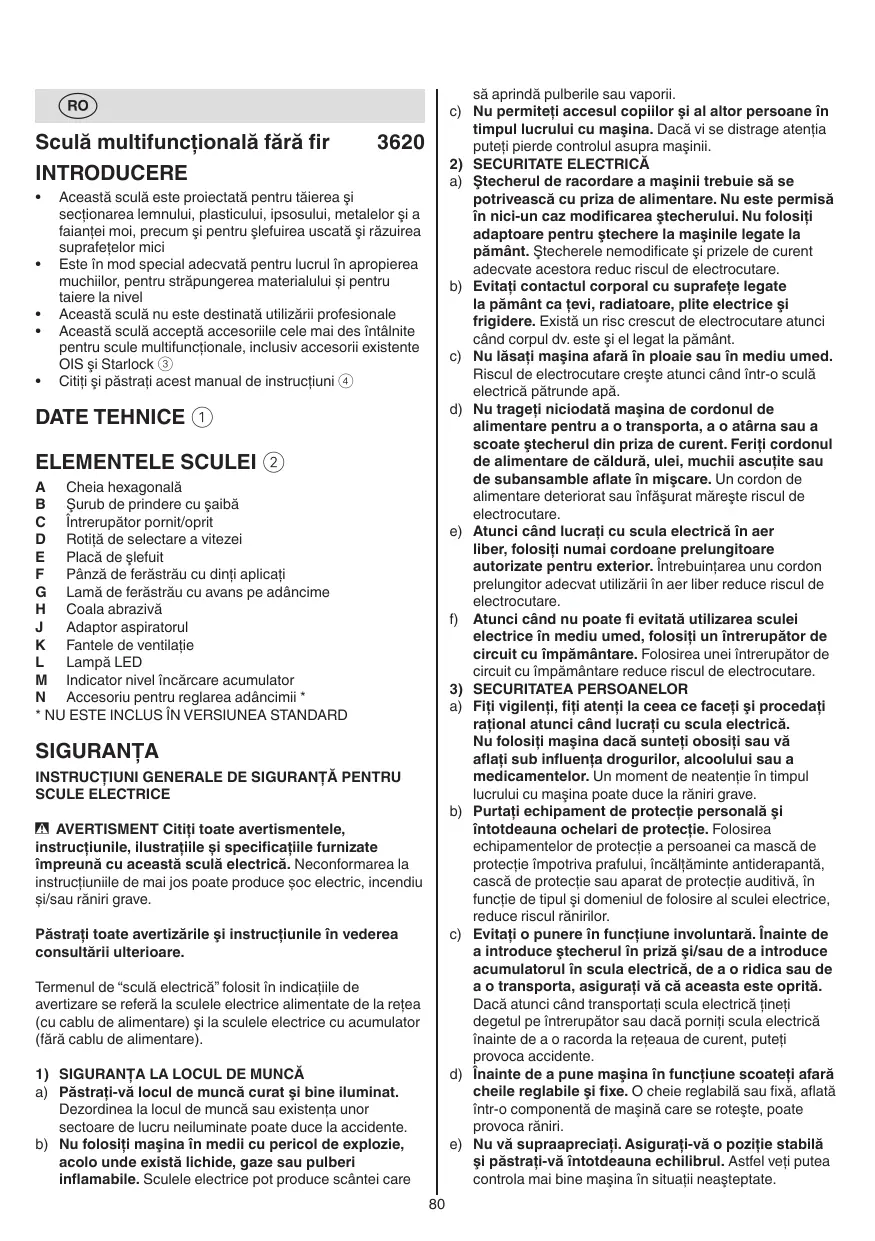MF1E3620AA - 3620 (MF1*3620**) - Unealtă multifuncțională fără fir SKIL - Manual de utilizare gratuit