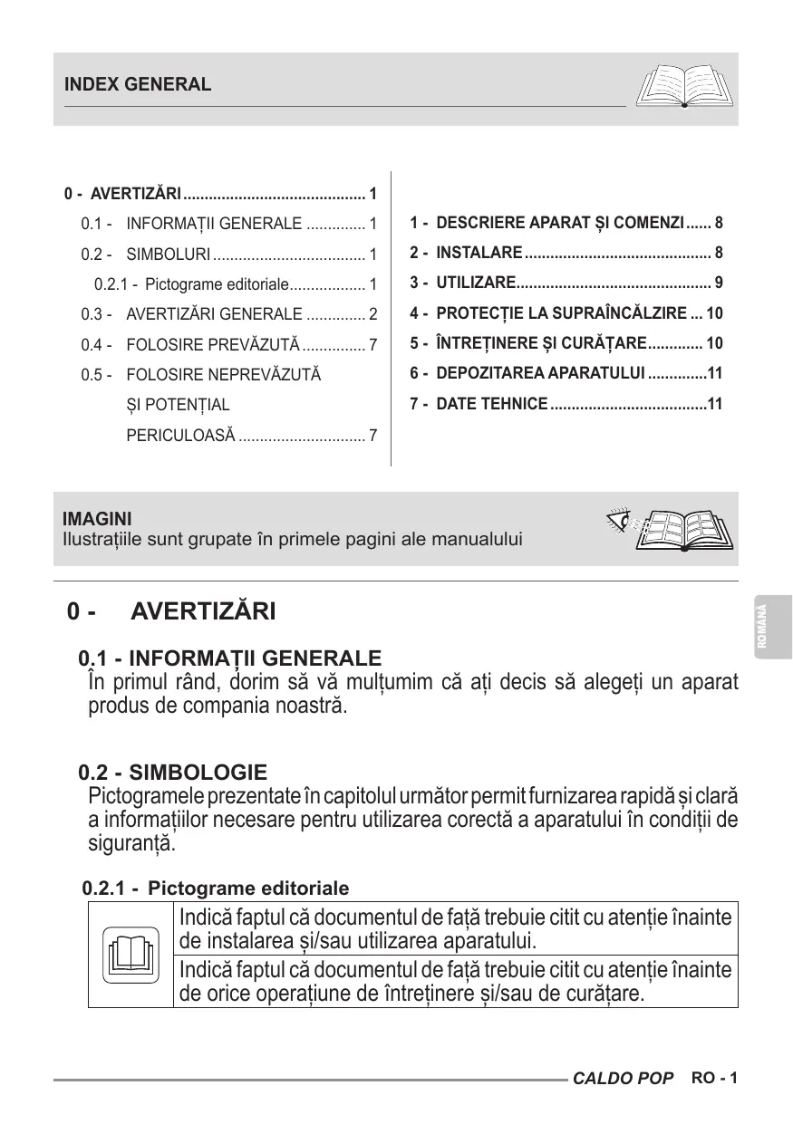 MANUAL DE UTILIZARE CALDO POP OLIMPIA SPLENDID