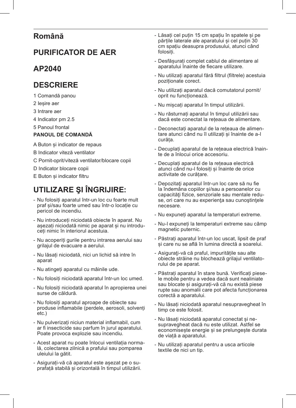 MANUAL DE UTILIZARE AP2040 TAURUS