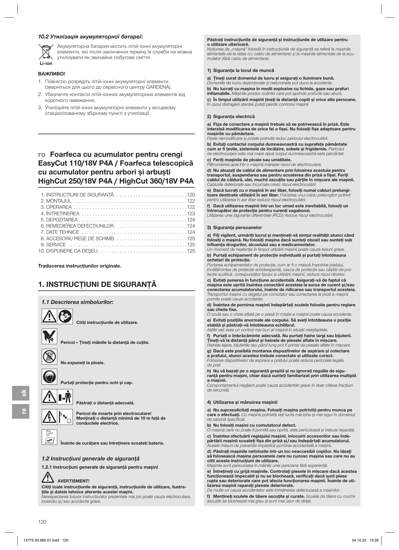 MANUAL DE UTILIZARE EasyCut 110/18V P4A, HighCut 250/18V P4A, HighCut 360/18V P4A GARDENA