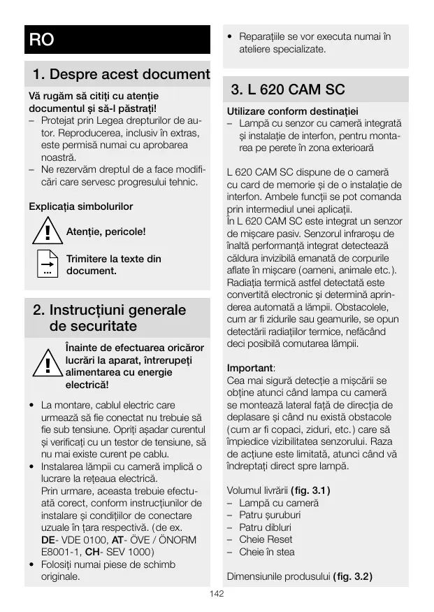 Téléchargez la notice de votre Cameră de supraveghere au format PDF gratuitement ! Retrouvez votre notice L620 - STEINEL et reprennez votre appareil électronique en main. Sur cette page sont publiés tous les documents nécessaires à l'utilisation de votre appareil L620 de la marque STEINEL.