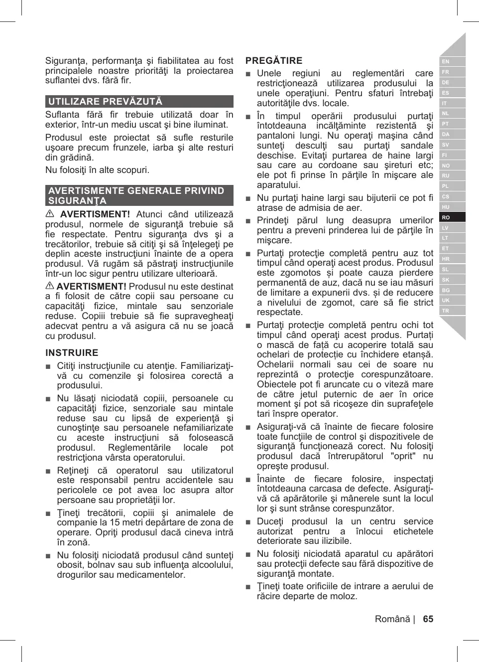MANUAL DE UTILIZARE RY36BLA RYOBI