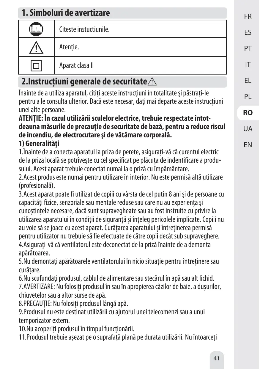 14.MISE EN GARDE : Évitez tout contact avec des pièces mobiles. N'insérez jamais vos doigts, toute autre partie du corps ou tout objet à travers la grille du ventilateur. Les adultes doivent faire particulièrement attention lorsqu'ils utilisent ce ventilateur à proximité des enfants.