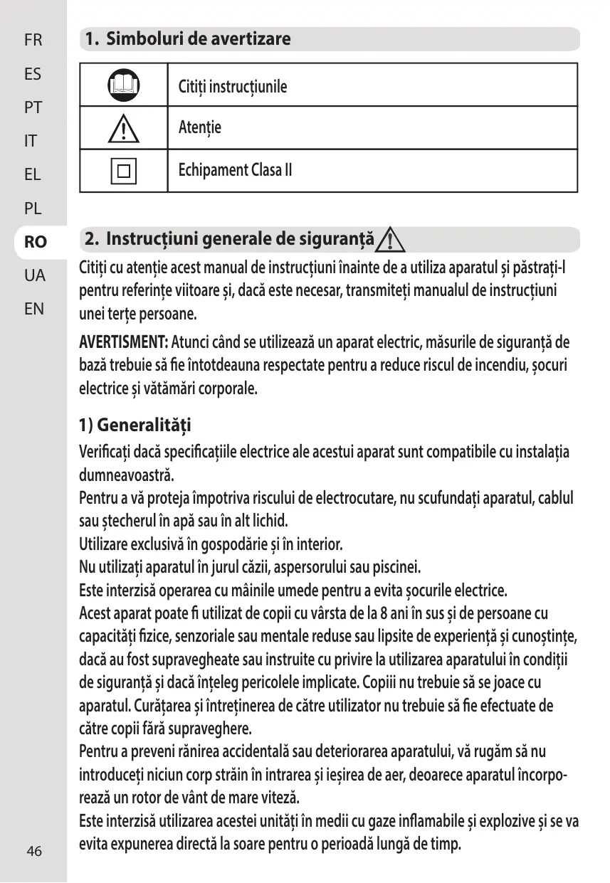 Pour éviter toute blessure accidentelle ou tout dommage à l'appareil, n'insérez aucun corps étranger dans l'entrée et la sortie d'air, car l'appareil est équipé d'un rotor à