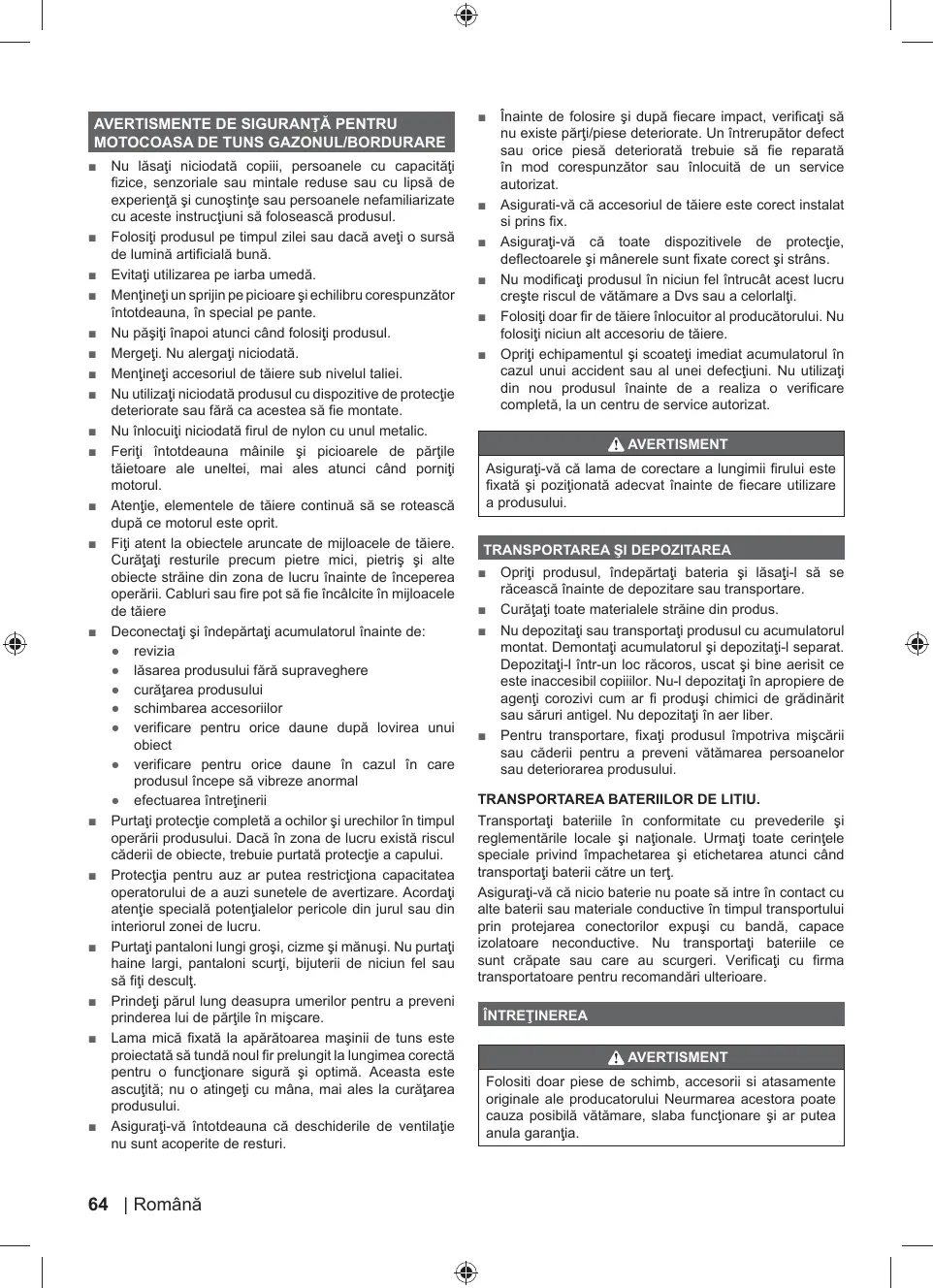 MANUAL DE UTILIZARE RLT1825M13 RLT1825M20 RLT1825MLL13 OLT1825M RYOBI