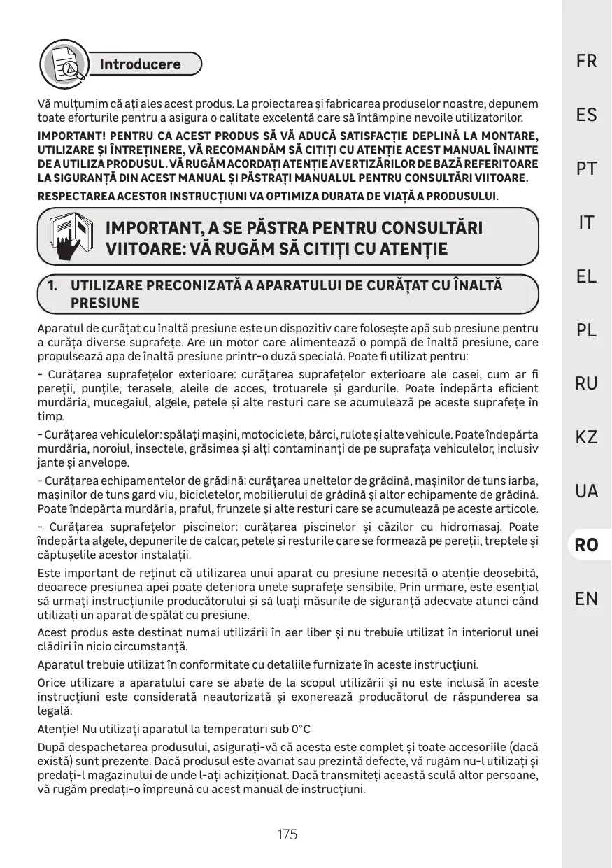 FN IMPORTANT - À CONSERVER POUR TOUTE REFERENCE ULTÉRIEURE : VEUILLEZ LIRE ATTENTIVEMENT QG. UTILISATION PRÉVUE DU NETTOYEUR HAUTE PRESSION )