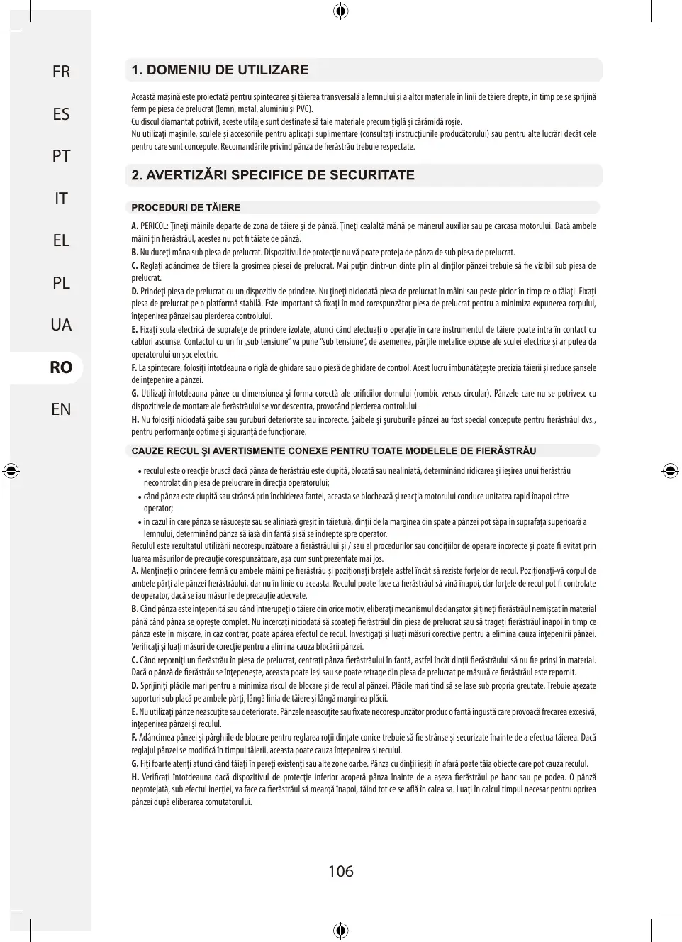 1.Nutiliser que les lames de sci etla meule diamantée recommandées pare fabricant, dont la lame de sie en bois est conforme à la norme EN 847-1, ill est destinée au bois et aux matériaux analogues