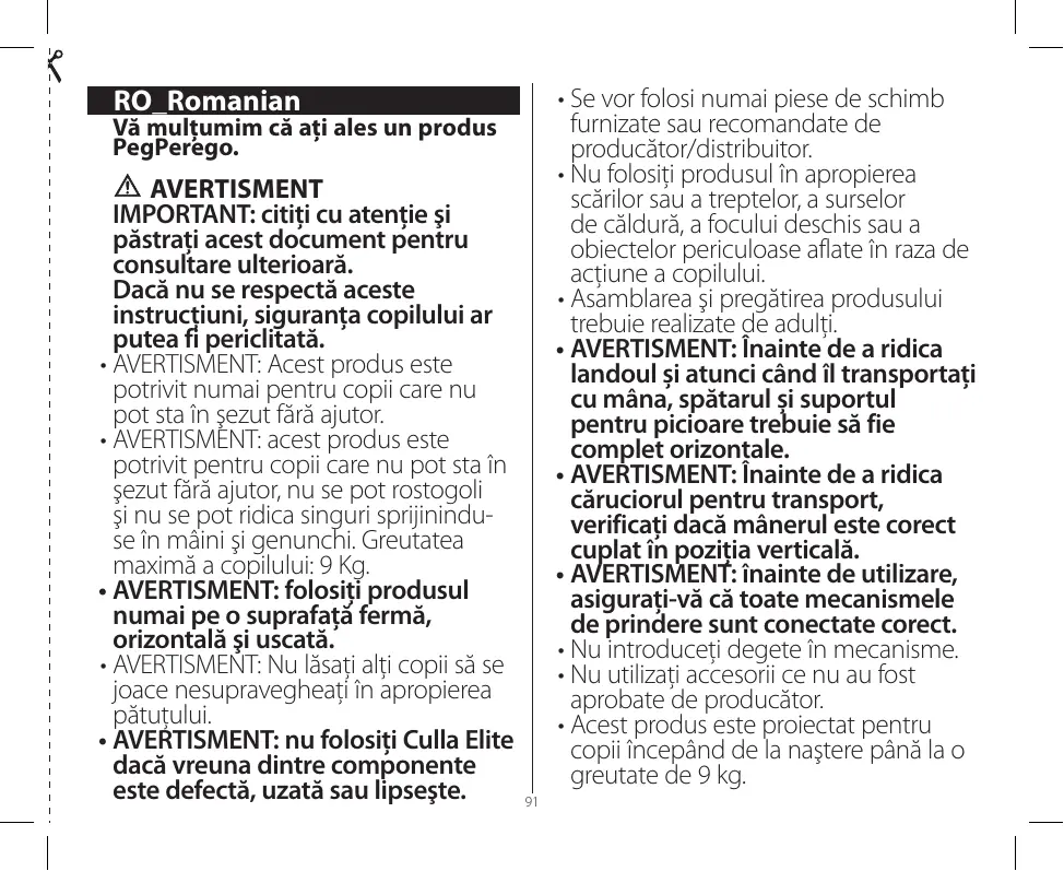 CULLA ELITE - Cărucioare PEG PEREGO - Notice d'utilisation et mode d'emploi gratuit