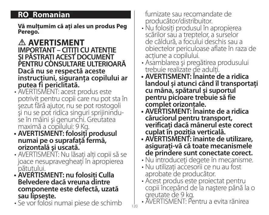 Descărcați instrucțiunile pentru Cărucioare în format PDF gratuit! Găsiți manualul dvs. Culla Belvedere - PEG PEREGO și luați din nou în mână dispozitivul dvs. electronic. Pe această pagină sunt publicate toate documentele necesare pentru utilizarea dispozitivului dvs. Culla Belvedere mărcii PEG PEREGO.