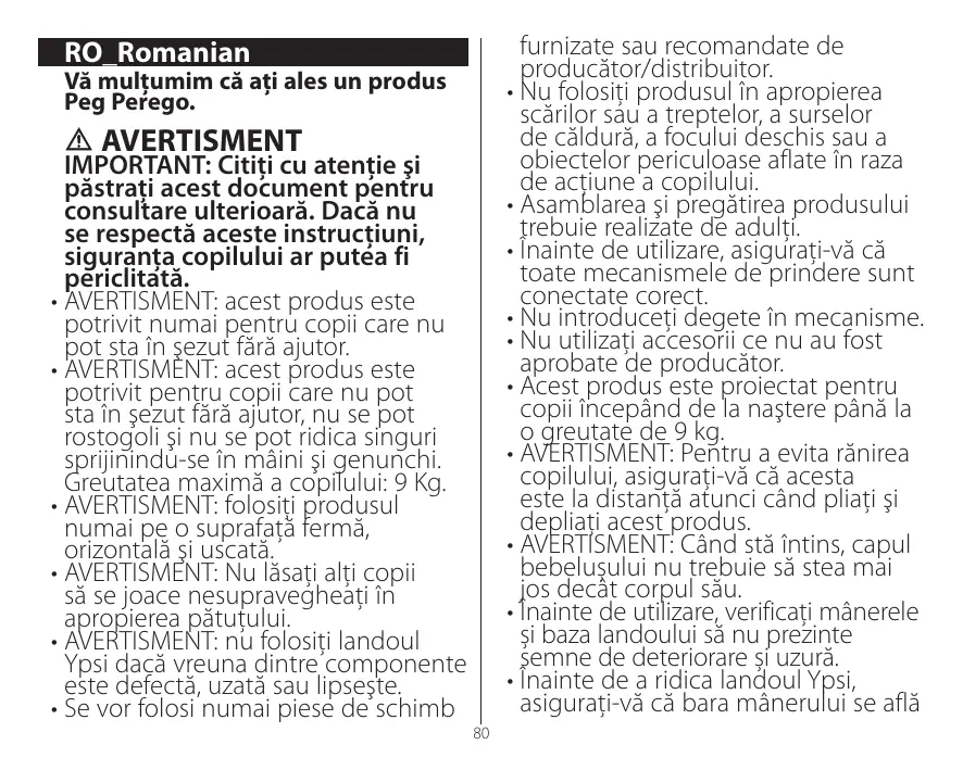 Ypsi Bassinet - Cărucioare PEG PEREGO - Manual de utilizare gratuit