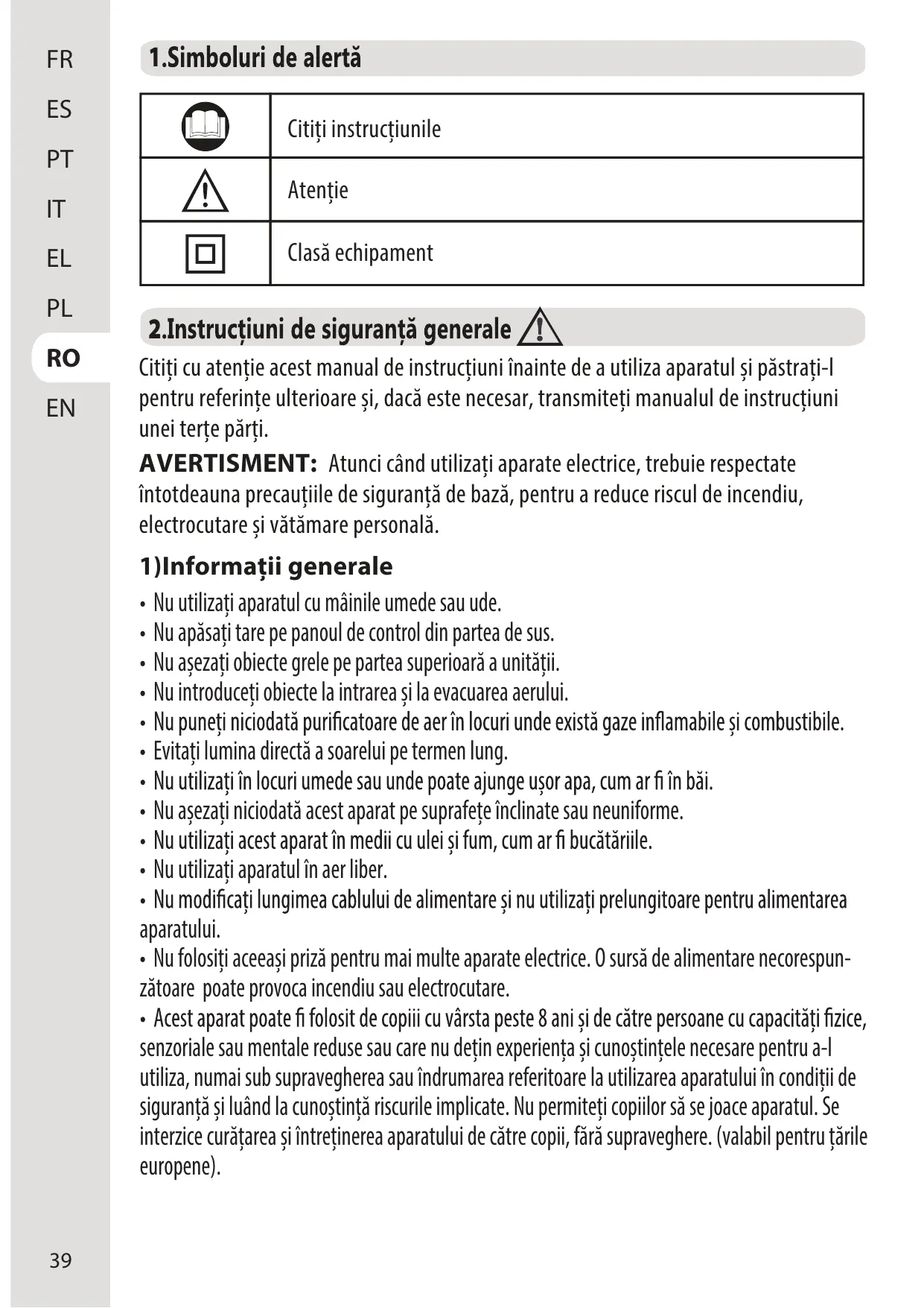 MANUAL DE UTILIZARE PURI AIR ADAPT EQUATION