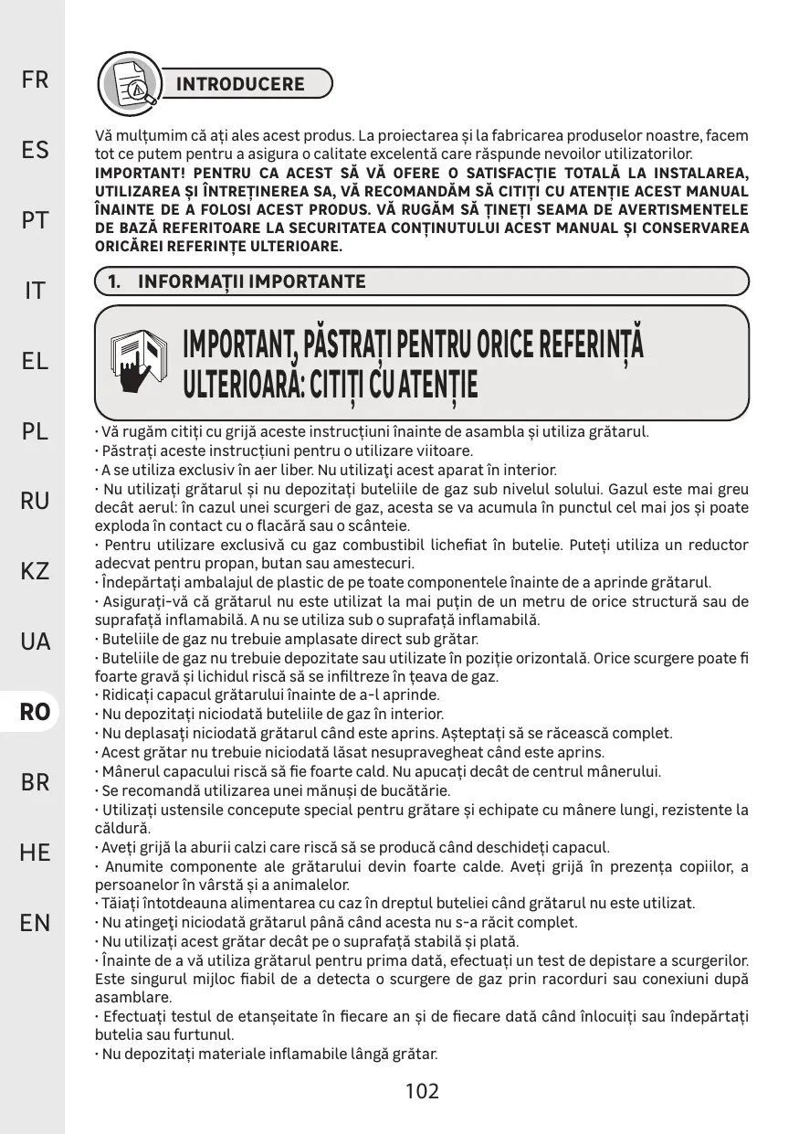 Va rugam sa predai gratarul, la sfâritul duratei sale de viaa, la un centru de tratare a deeurilor pentru a reciclat. Daca gratarul dumneavoastra este echipat cu motor sau cu o suanta, nu le aruncai sau sa-i ardei accesorile; va rugam conformai-va reglementarilor aplicabile privind colectarea, indepartarea i reciclarea acestor produse.