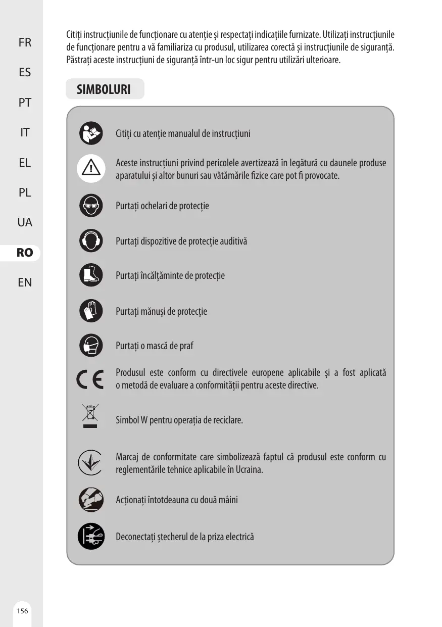 être dangereux pour l'environnement et la santé humaine car ils contiennent des substances dangereuses. UA PROTECTION DE L'ENVIRONNEMENT Les produits électriques usagés ne doivent pas être jetés avec les déchets ménagers. Recydez- RO les dans les installations existantes prévues à cet effet. Contactez les autorités locales ou votre revendeur pour des conseils en matière de recyclage. 1! sera ensuite recyclé ou démonté afin de EN