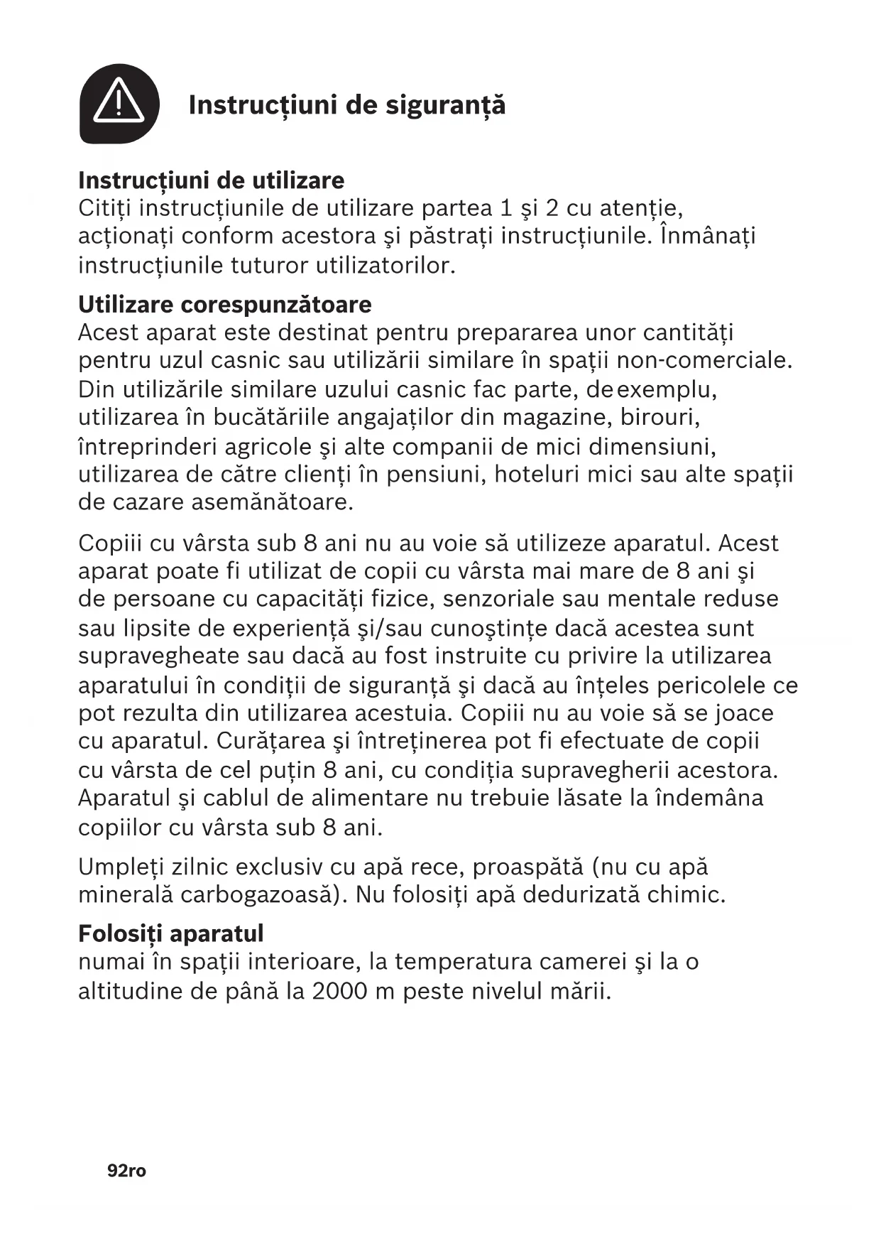 Copiii cu vârsta sub 8 ani nu au voie să utilizeze aparatul. Acest