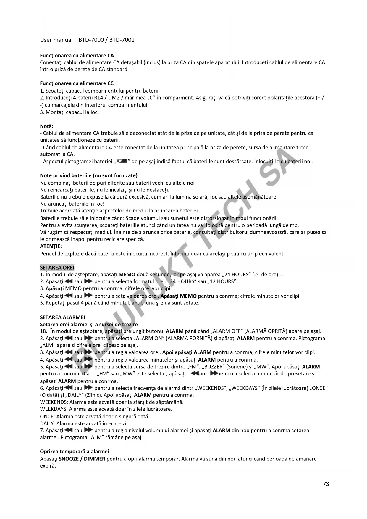 MANUAL DE UTILIZARE BTD7000 BLAUPUNKT