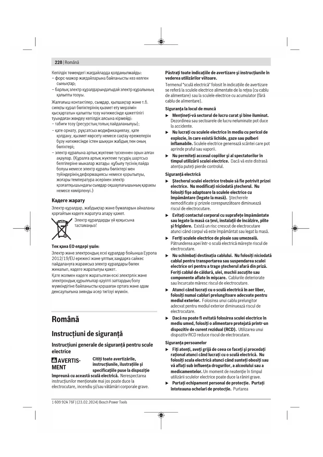 utilizării sculelor electrice poate duce la răniri grave. u Purtaţi echipament personal de protecţie. Purtaţi întoteauna ochelari de protecţie. Purtarea 1 609 92A 76F | (23.02.2024) Bosch Power ToolsRomână | 229