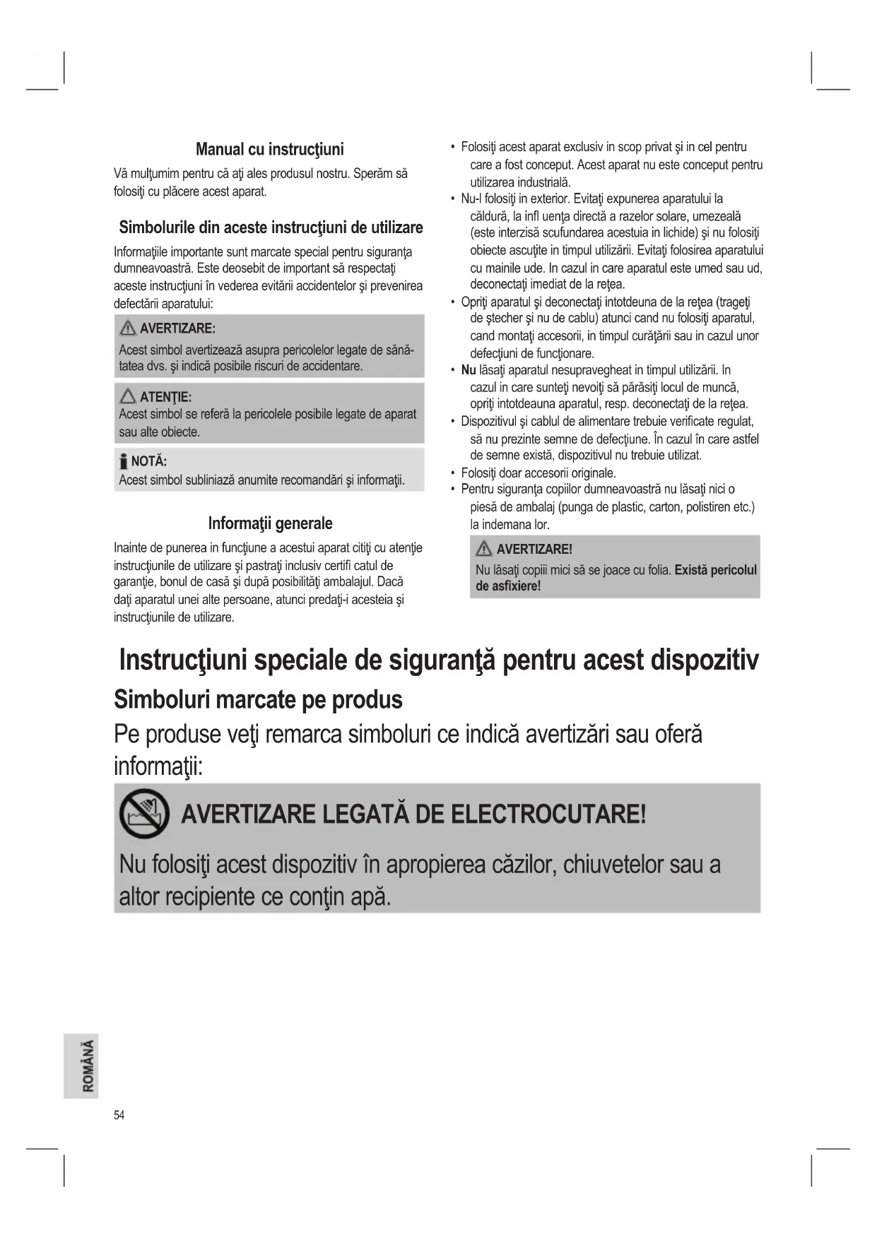 Inainte de punerea in funcţiune a acestui aparat citiţi cu atenţie