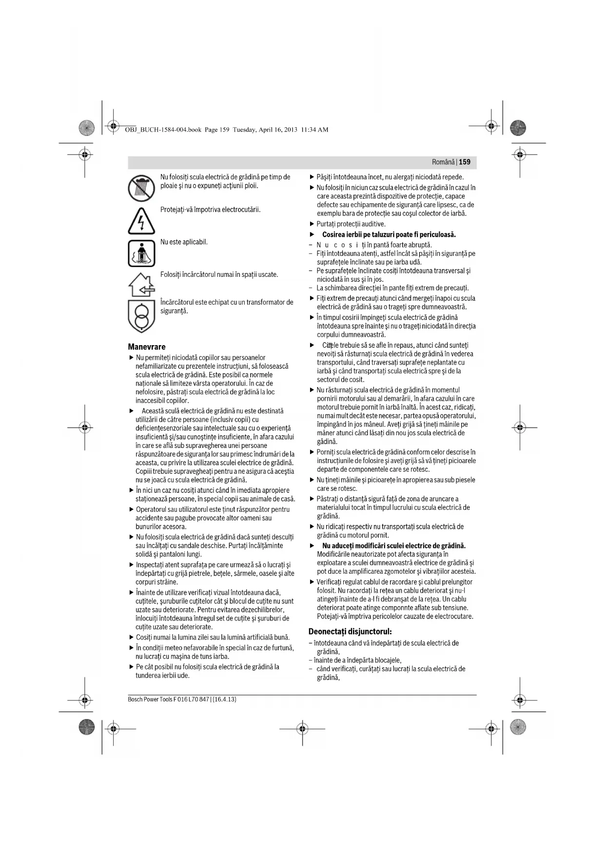 aceasta, cu privire la utilizarea sculei electrice de grădină.