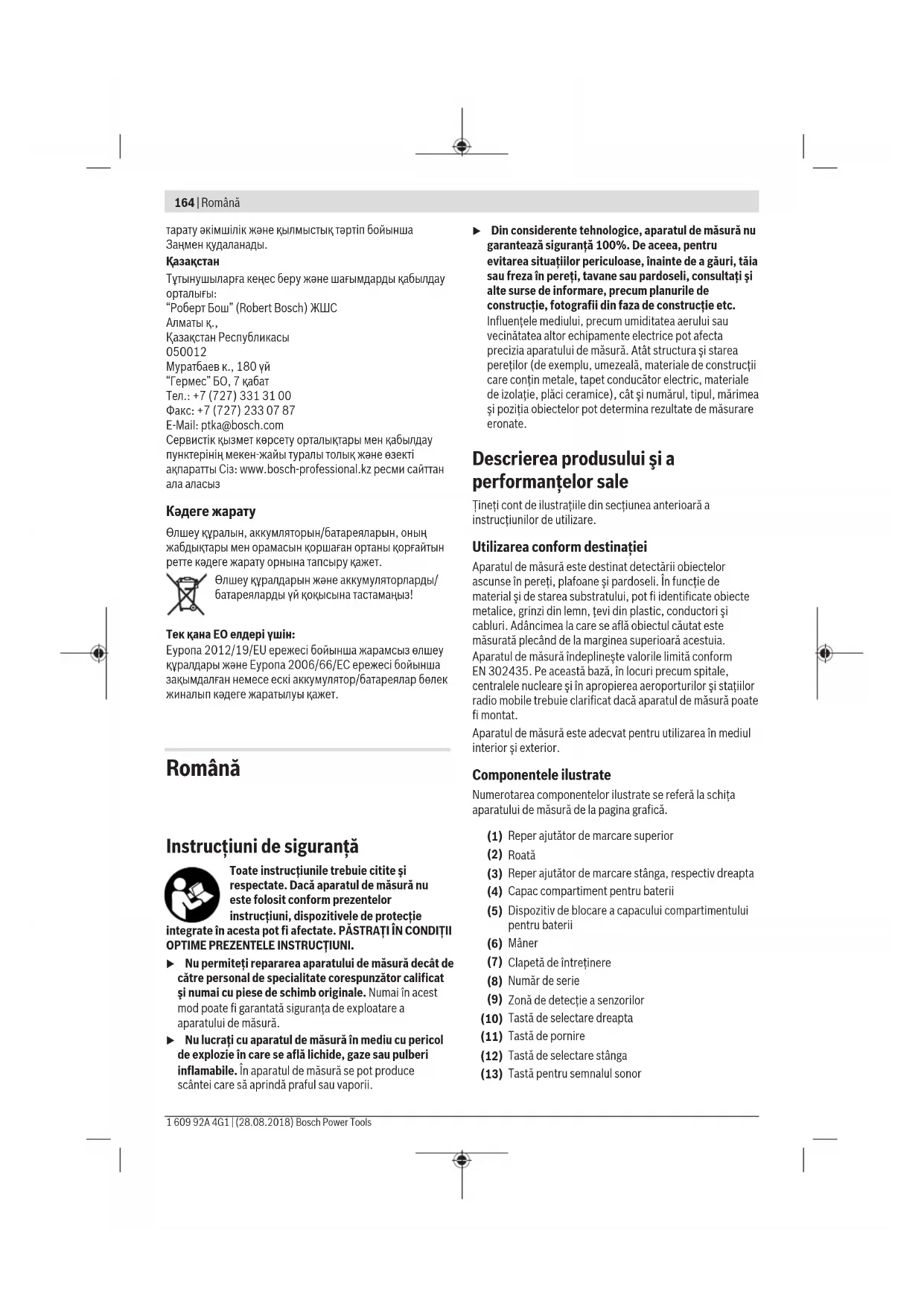 este necesar numărul de serie(8) de pe plăcuţa cu date tehnice. u Rezultatul măsurării, adică precizia şi adâncimea de detectare, pot fi influenţate negativ în cazul unei stări