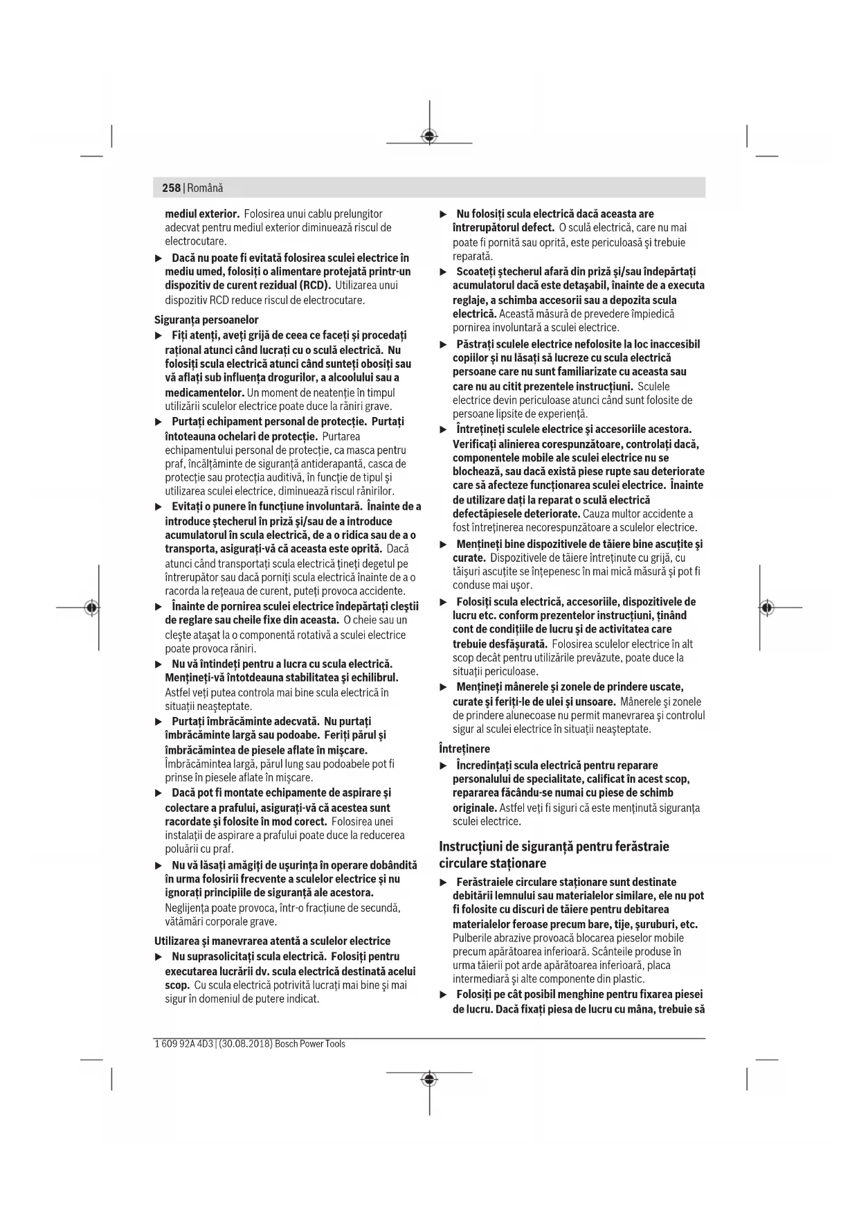 Română | 257 Bosch Power Tools 1 609 92A 4D3 | (30.08.2018)258 | Română