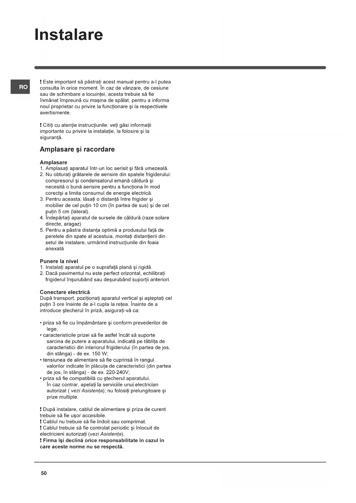 ! Este important sã pãstraþi acest manual pentru a-l putea