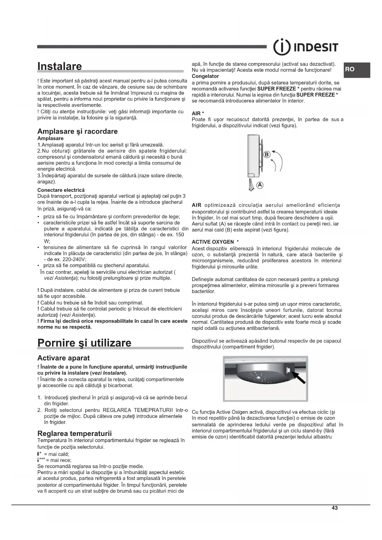 MANUAL DE UTILIZARE IN CB 33 AA INDESIT