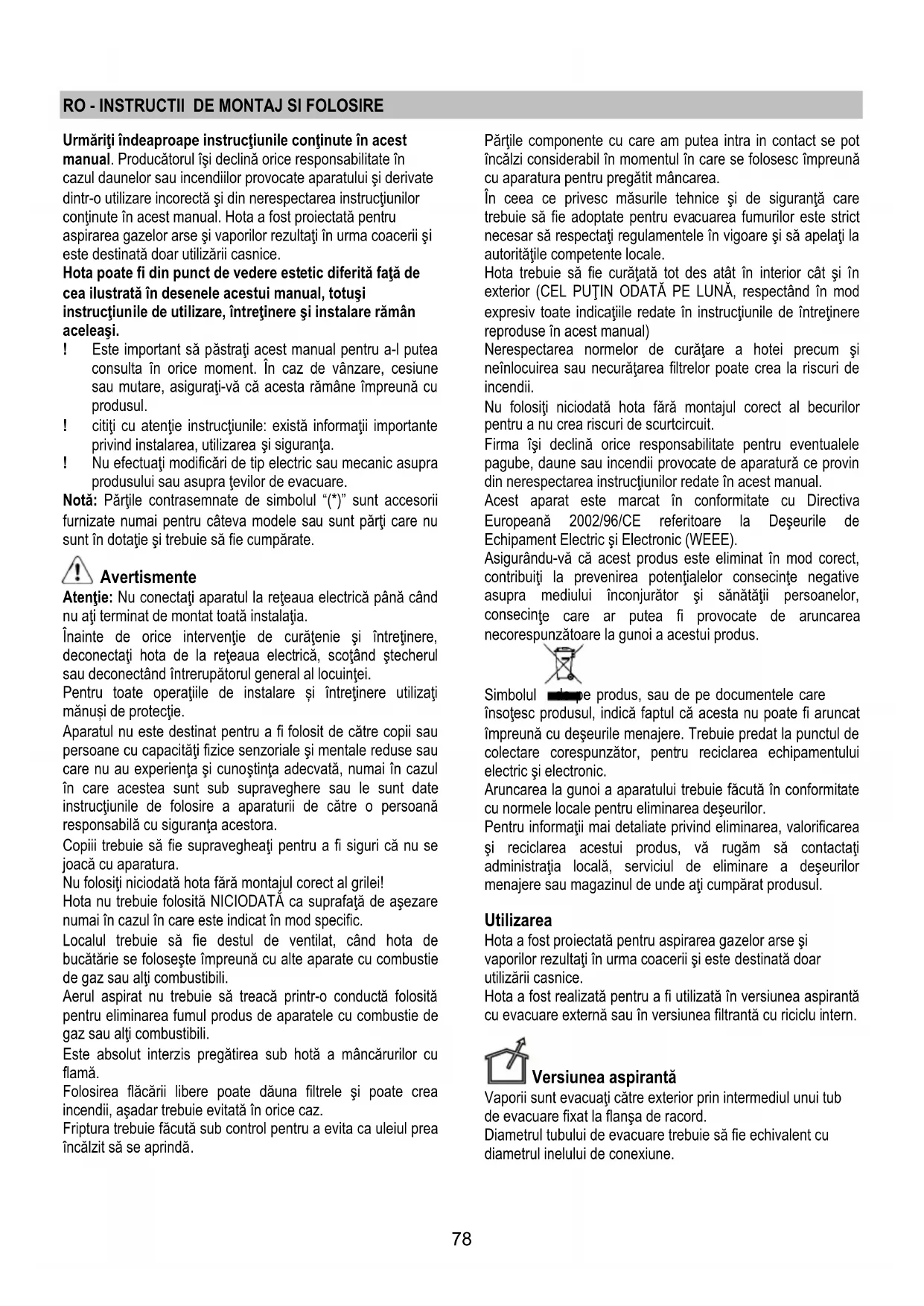 Hota a fost proiectată pentru aspirarea gazelor arse şi