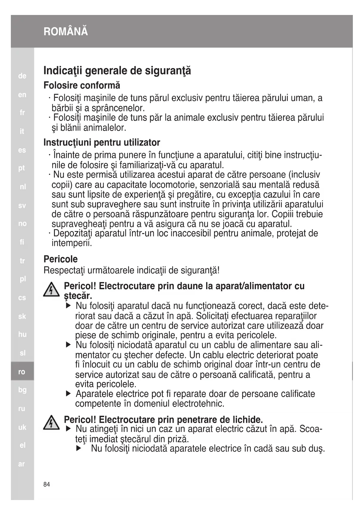 · Folosiţi maşinile de tuns păr la animale exclusiv pentru tăierea părului